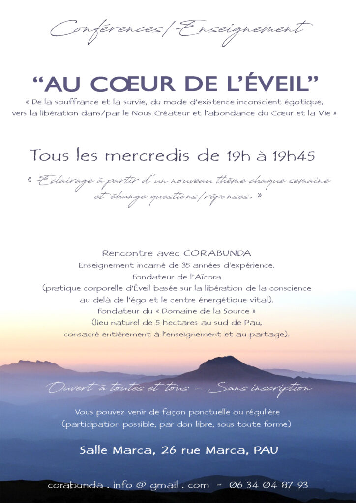 Chaque semaine, autour de la pratique, Corabunda apportera son éclairage à partir d’un thème relatif à l’Éveil et répondra aux questions des personnes participantes.